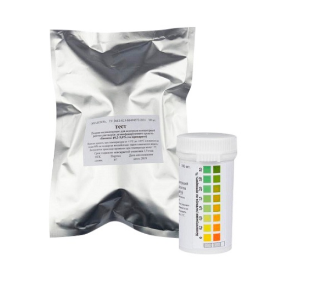 Концентрации, не указанные на цветовой шкале, определяют после предварительного разведения исходного раствора согласно таблице разведения, приведенной в Инструкции по применению индикаторных полосок.