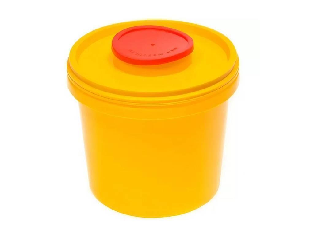 Состоит из банки и двух крышек. Крышка контейнера должна быть с загнутыми краями для фиксации. В основную крышку встроена заглушка, которая после использования контейнера герметично закрывается. Имеет ручку для удобства перемещения. Обязательное наличие влагостойкой этикетки с указанием кода подразделения, названия ЛПУ, даты сбора и ответственного за сбор отходов.