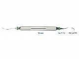 Пародонтологический инструмент имеет два зеленых автоклавируемых маркировочных кольца, благодаря которым можно определить область применения кюреты.
