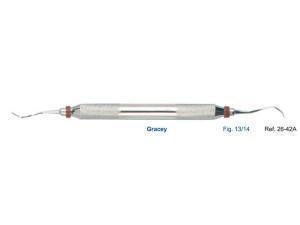 Ручка инструмента двусторонняя. С обоих концов рукоятки расположены зеркально отраженные рабочие части, каждая из которых имеет закругленный кончик, полукруглое сечение и режущую кромку, расположенную под углом 70° по отношению к терминальному стержню. Конструкция кюреты идеально подходит для работы в узких и глубоких пародонтальных карманах.
