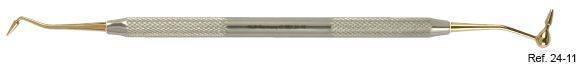 С обоих концов двустороннего штопфера расположены отличные друг от друга рабочие части, одна из которых имеет конусовидное строение, предназначенное для моделирования фиссур и бугров. Противоположная рабочая часть стоматологического инструмента образована за счет комбинации шаровидной и конусообразной форм, соединенных между собой. Шаровидный штопфер служит для конденсации композитных материалов. Рабочие части и функциональные стержни стоматологического штопфера имеют нитрид титановое покрытие, уменьшающее адгезию композитов к поверхности инструмента и предотвращающее окрашивание реставраций частицами металла, а также используются для контраста.