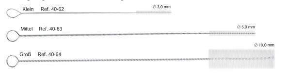 Стоматологическое изделие представляет собой нейлоновую щетку диаметром 19 мм, размещенную на удлиненном, спиральном, металлическом стержне.