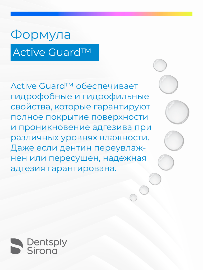 - Активно распределяется по поверхности. Формула адгезива Prime&Bond universal™ обеспечивает его активное распределение, минимизируя риск возникновения сухих пятен.