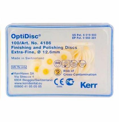 Система OptiDiscтм от Kerr представляет собой превосходную комбинацию дисков с абразивными частицами различного размера для контурирования, финирования и полировки до зеркального блеска композитов, стекло-иономеров, амальгам, полудрагоценных и драгоценных металлов.