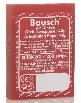 - Требование равной интенсивности отпечатков на контактных пунктах всей зубной дуги является абсолютно необходимым условием правильной припасовки накусочных шин (шина Мичигана). При этом подковообразные полоски бумаги Бауша значительно облегчают проведение проверочных проб на смоченных слюной пластмассовых поверхностях.