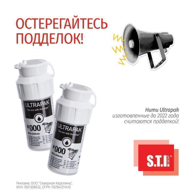 Erid: 2VSb5ybAiWc На прошлой неделе компания S.T.I. dent, эксклюзивный поставщик Ultradent (США) на территории РФ, разослал своим партнерам письмо, информирующее об обнаружении подделок товаров указанного бренда. Речь идет о ретракционных нитях Ultrapak от Ultradent. В письме уточняется, какие именно изделия считаются подделками и почему, как можно распознать, что в вашем ассортименте находится фальсификат. Данная информация больше […]