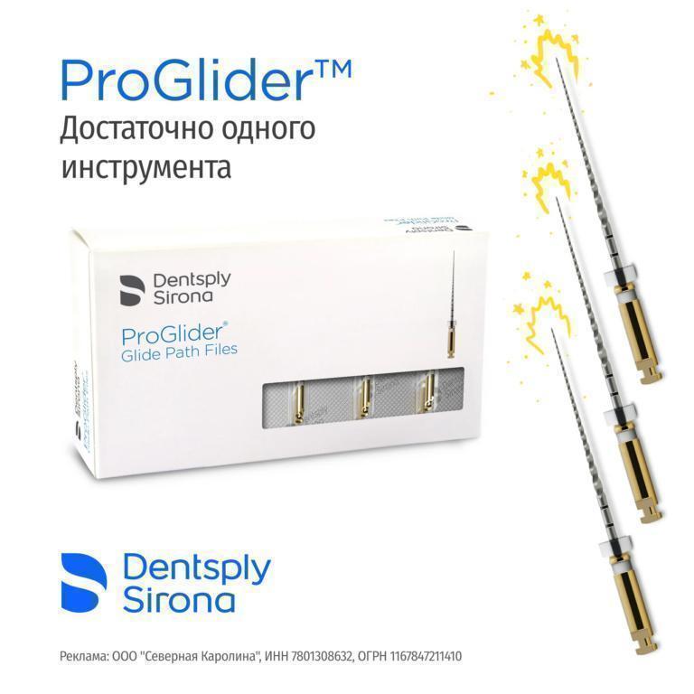 Действительно ли достаточно всего одного инструмента для создания «ковровой дорожки»? Да, если этот инструмент ProGlider™ от Dentsply Sirona. Он изготовлен из гибкого и устойчивого к циклическим нагрузкам никель-титанового сплава M-Wire®. Выпускается в стерилизованных блистерах для одноразового применения. ProGlider™ — это улучшенная эргономика, снижение риска поломки инструмента, высокая режущая эффективность, отсутствие риска перекрестного заражения.