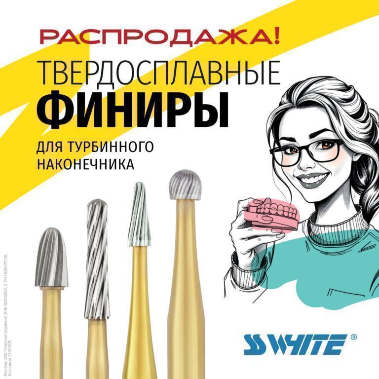 Прямо сейчас в нашей компании распродажа твердосплавных финиров SSWHITE для турбинного наконечника. В предложении 12 инструментов со скидкой более 30%.
